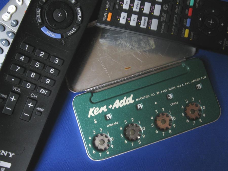 My job as a child on grocery day was to hold the “adder “This was a wondrous 6 inch case with turning wheels that looked like clocks. I took the metal stick and “dialed” prices of each item, advancing it to a total. Life in those days was as simple as that little machine. We took in information and tallied it up between our own little gears getting the right answer.
